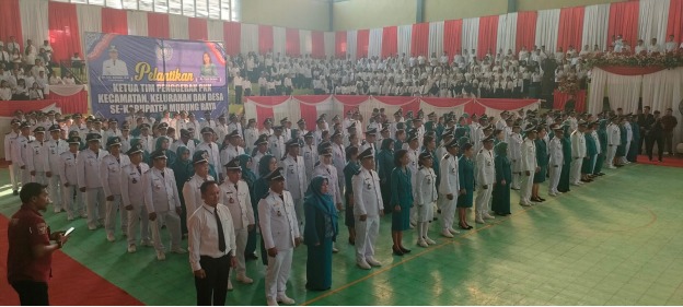 Pengambilan sumpah janji jabatan Kades.dan Ketua TP PKK tingkat Desa 2024 oleh Pj Bupati Mura Hermon di GOR Tanai Malai Tolung Lingu,