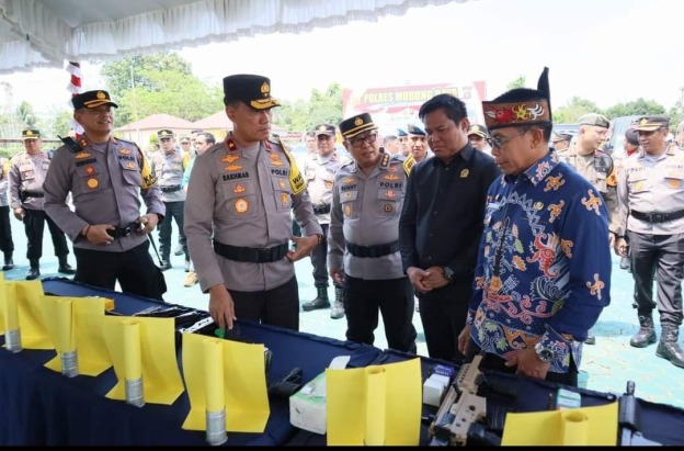 Wakapolda disambut oleh Kapolres Murung Raya (Mura) AKBP Irwansah, Sik MM, Pj Bupati Mura Drs Dr Hermon, M.Si serta unsur Forkompimda setempat.