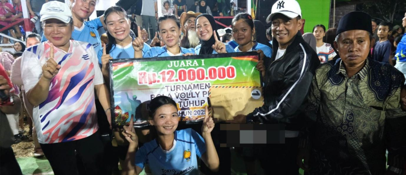 Kegiatan resmi ditutup dengan penyerahan piala kepada para pemenang oleh Bupati Heriyus, dilanjutkan sesi foto bersama tim dan panitia. Suasana keakraban dan kegembiraan masyarakat masih terasa hingga malam hari