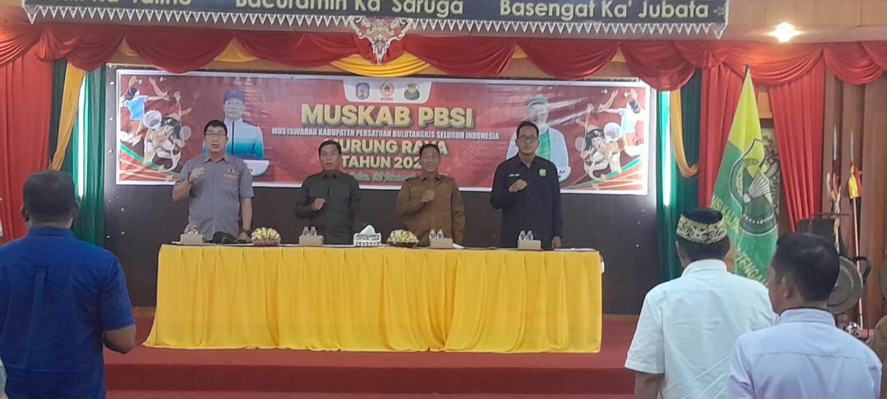 Puruk Cahu, PBN.Info – Bupati Murung Raya sekaligus Ketua Komite Olahraga Nasional Indonesia (KONI) Murung Raya, Heriyus, SE secara resmi membuka Musyawarah Kabupaten (Muskab) Persatuan Bulutangkis Seluruh Indonesia (PBSI) Murung Raya yang digelar di Gedung Dewan Adat Dayak Puruk Cahu, Senin (3/11/2025).
